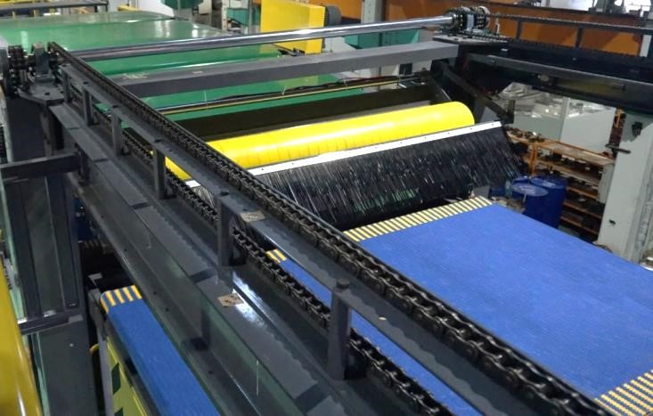 • Designed geometric angle for ending belt to delivery sheets regular stacking on roller conveyor platform.